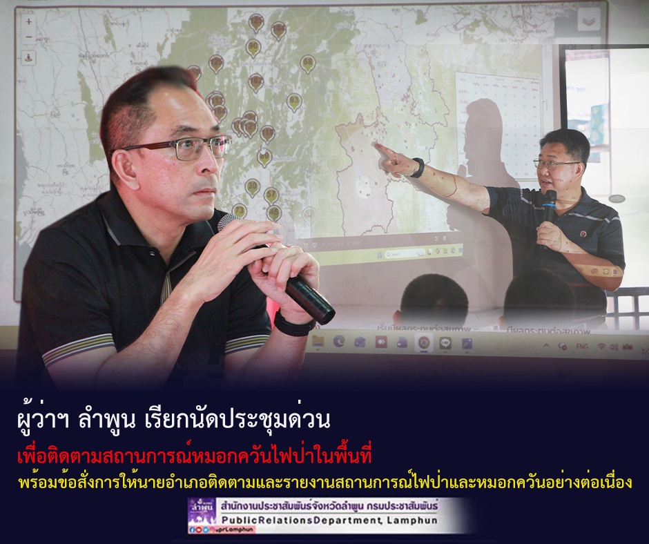 ผู้ว่าฯ ลำพูน เรียกนัดประชุมด่วน เพื่อติดตามสถานการณ์หมอกควันไฟป่าในพื้นที่ พร้อมข้อสั...