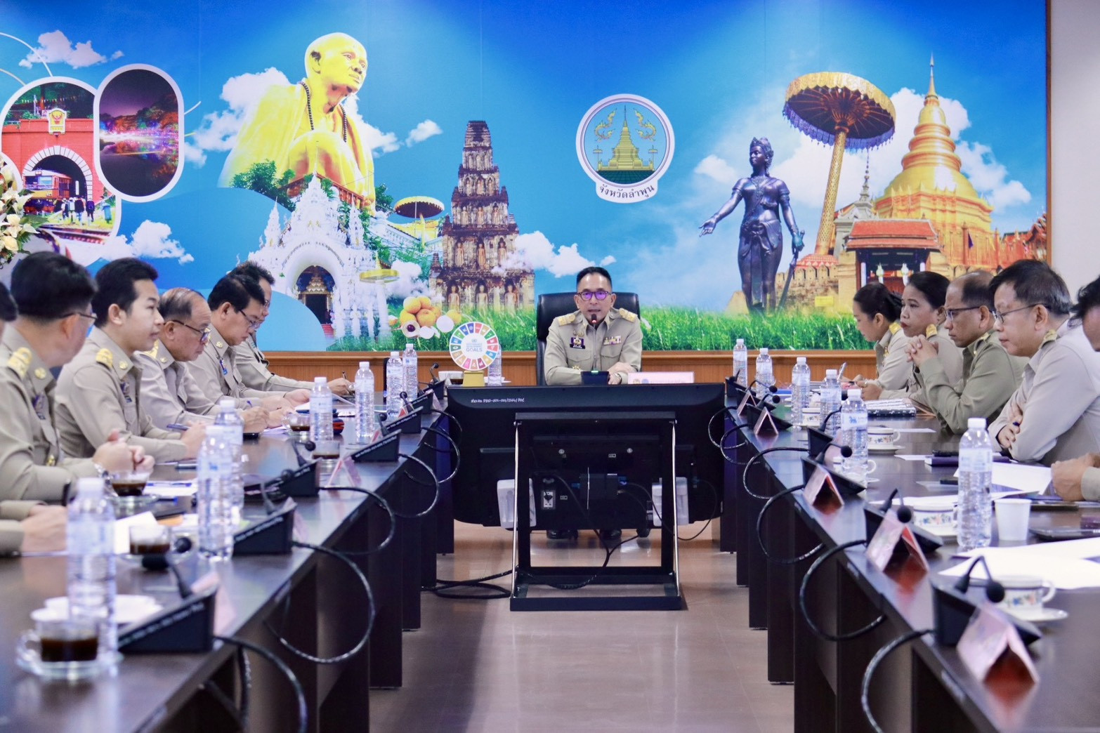 จากนั้น ผู้ตรวจราชการกระทรวงมหาดไทย เขตตรวจราชการที่ 15 พร้อมคณะได้รับฟังผลการดำเนินงานของจังหวัดลำพูน โดยมี นายาตรี กิตติธนดิตถ์ รองผู้ว่าราชการจังหวัดลำพูน นายบุญส่ง ไชยมณี หัวหน้าสำนักงานจังหวัดลำพูน หัวหน้าส่วนราชการจังหวัดที่เกี่ยวข้อง รายงานผลการดำเนินงาน