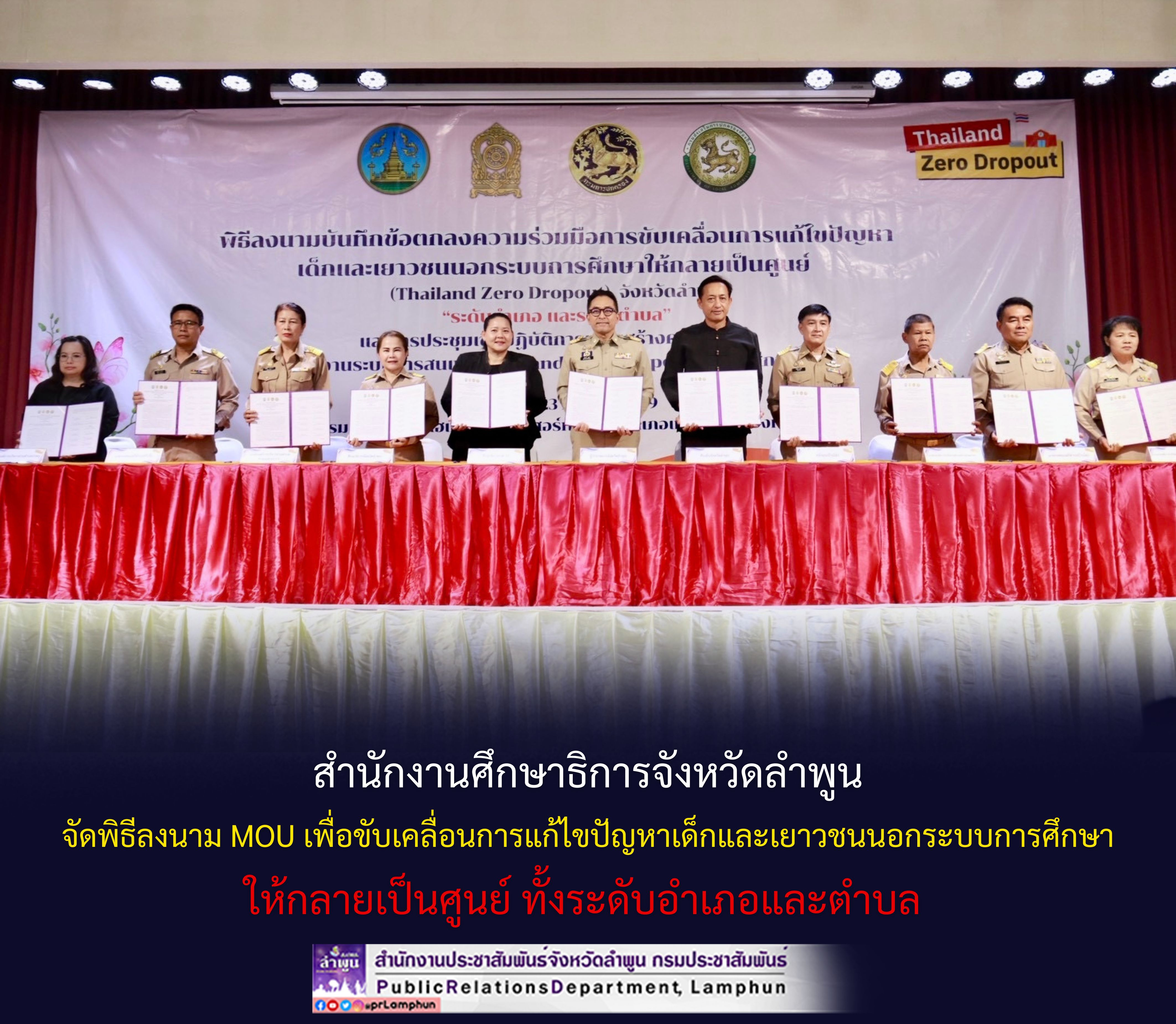 สำนักงานศึกษาธิการจังหวัดลำพูน จัดพิธีลงนาม MOU เพื่อขับเคลื่อนการแก้ไขปัญหาเด็กและเยาวชนนอกร...