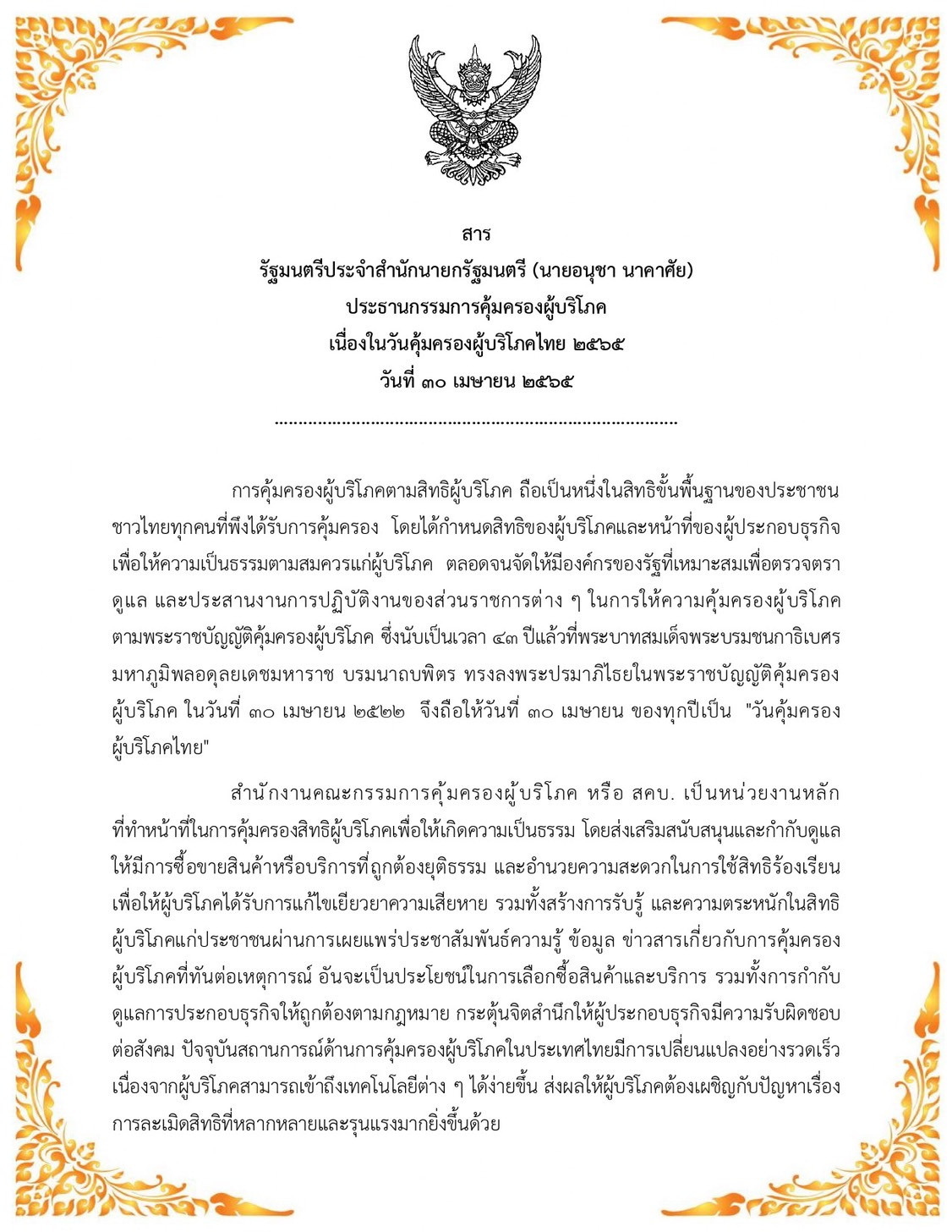 หัวข้อเอกสารเผยแพร่:: สารรัฐมนตรีประจำสำนักนายกรัฐมนตรี งานวันคุ้มครองผู้บริโภคไทย ๒๕๖๕