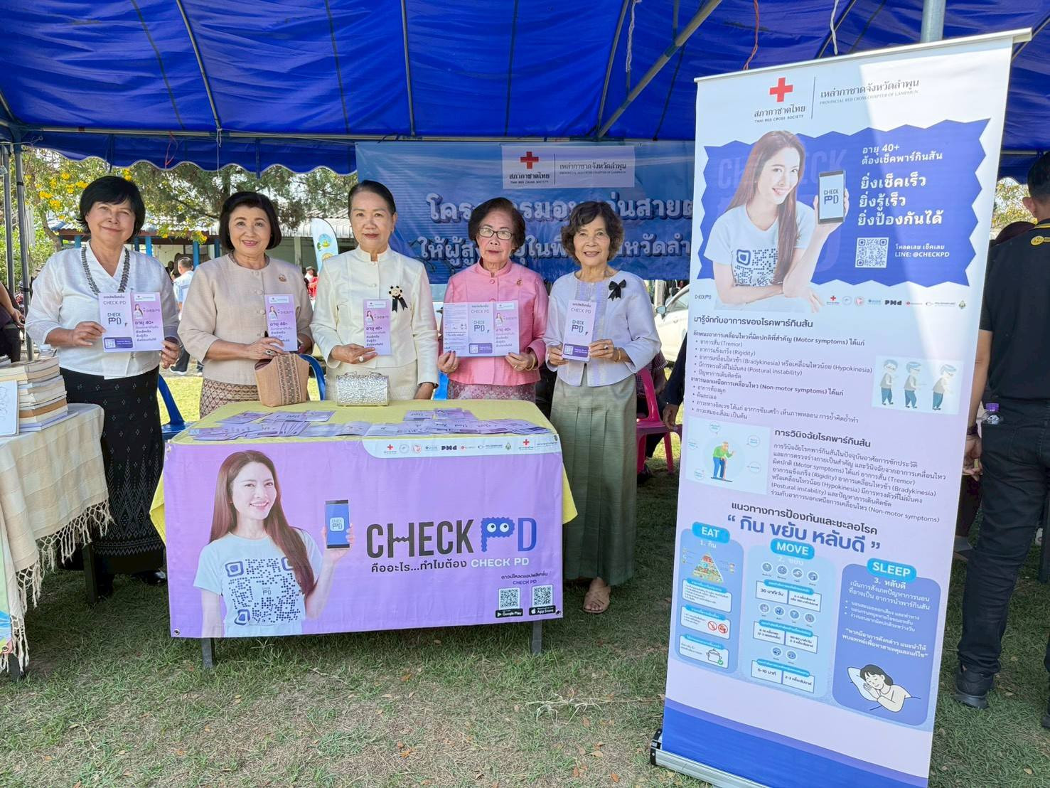 เหล่ากาชาดจังหวัดลำพูน จัดบูธกิจกรรมโครงการ CHECK PD อายุ 40+ ต้องเช็คพาร์กินสัน ยิ่งเช็คเร็...