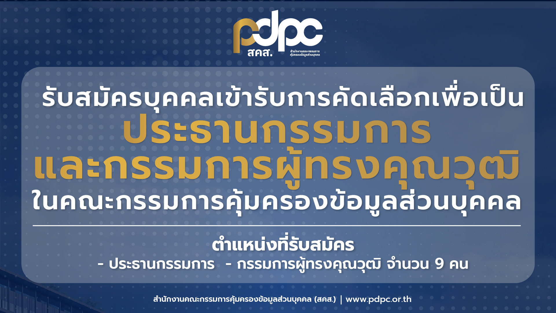 สำนักงานคณะกรรมการคุ้มครองข้อมูลส่วนบุคคล ประกาศรับสมัครเข้ารับการคัดเลือกเพื่อเป็นประธานกรร...