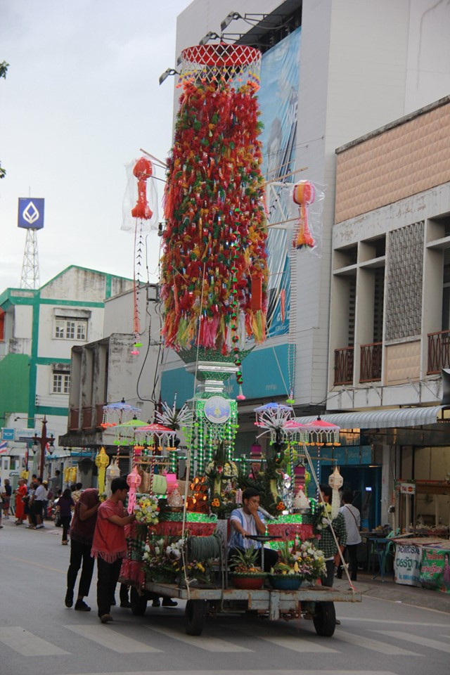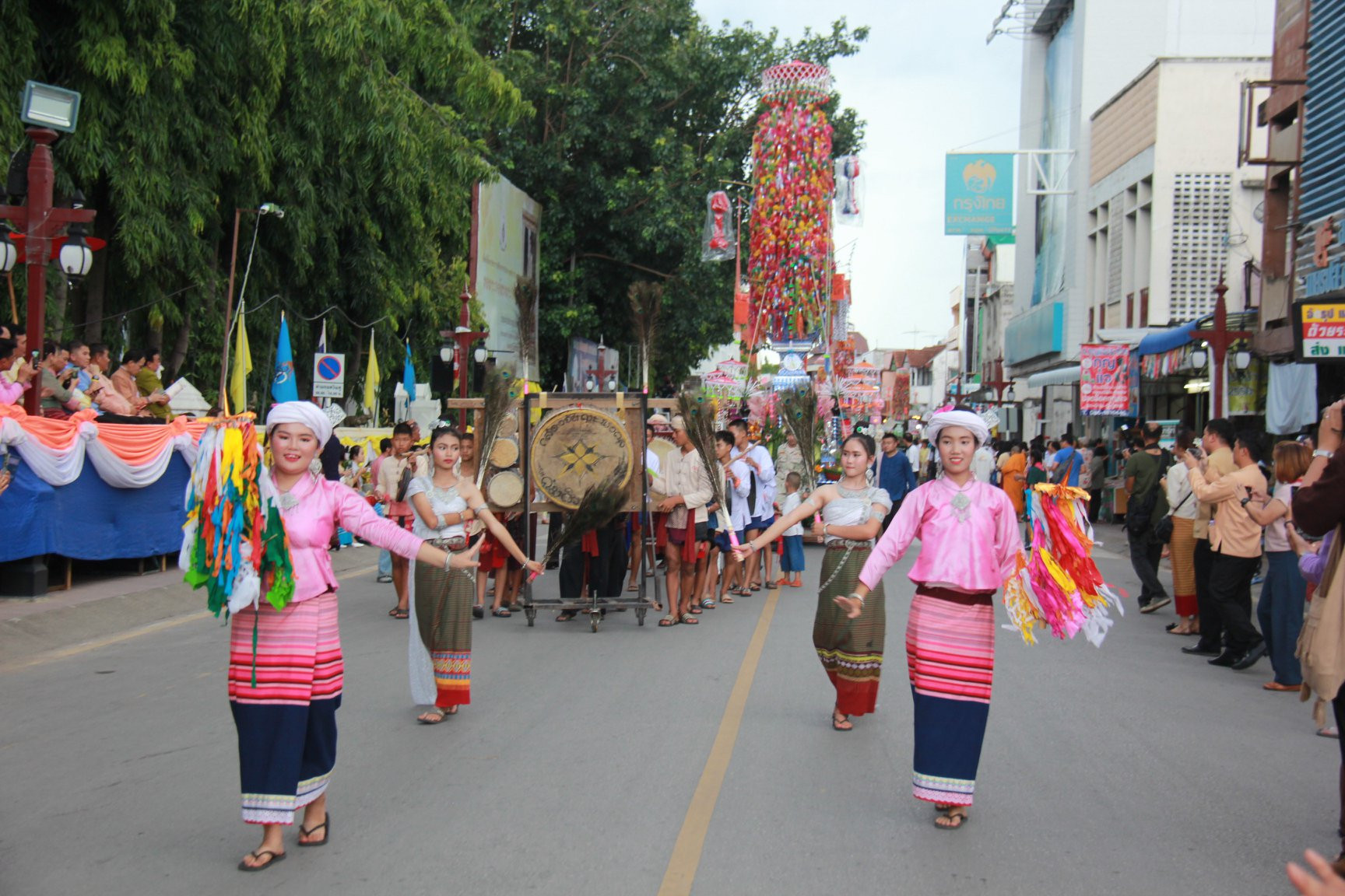 พุทธศาสนิกชนชาว จังหวัดลำพูน ตกแต่ง ต้นสลาก และ ร่วมกันจัดขบวนแห่ ต้นสลากย้อม ขนาดใหญ่ สูง 12 เมตร เคลื่อนสู่ วัดพระธาตุหริภุญชัย ในงานประเพณี สลากภัตสลากย้อม ลำพูน หนึ่งเดียวในโลก ประจำปี 2562 ที่ได้จัดขึ้นอย่างยิ่งใหญ่