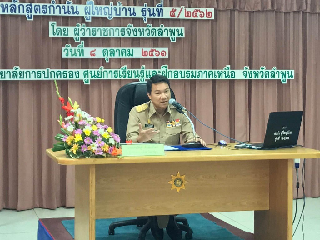 วันจันทร์ ที่ 8 ตุลาคม 2561 เวลา 09.00 น. นายอรรษิษฐ์ สัมพันธรัตน์ ผู้ว่าราชการจังหวัดลำพูน เป็นประธานเปิดการอบรมหลักสูตรกำนัน ผู้ใหญ่บ้าน รุ่นที่ 5 พร้อมบรรยายพิเศษในหัวข้อ “คุณธรรมนักปกครองท้องที่” ให้แก่กำนัน ผู้ใหญ่บ้านจากทุกจังหวัดทั่วประเทศ จำนวนกว่า 95 คน ณ วิทยาลัยการปกครอง อำเภอบ้านโฮ่ง จังหวัดลำพูน โดยเป็นหลักสูตรที่จัดขึ้นในระหว่างวันที่ 8 – 19 ตุลาคม 2561 โดยมีวัตถุประสงค์เพื่อพัฒนาองค์ความรู้ ความสามารถ และเสริมสร้างสมรรถนะของกำนัน ผู้ใหญ่บ้าน ในการปฏิบัติงานในระดับพื้นที่หมู่บ้าน ตำบล ในการนำนโยบายของรัฐบาลและกระทรวงมหาดไทยไปปฏิบัติให้เกิดผลสำเร็จเป็นรูปธรรมในพื้นที่ เพื่อตอบสนองความต้องการและแก้ไขปัญหาต่างๆของประชาชน โดยผู้ว่าราชการจังหวัดได้เน้นย้ำให้ผู้เข้ารับการอบรมทุกคนได้ตระหนักถึงบทบาทหน้าที่ที่ตนเองได้รับมอบหมายจากประชาชนและภาครัฐ ต้องทำความเข้าใจถึงความสำคัญในหน้าที่และความรับผิดชอบของตนให้ถ่องแท้โดยให้ยึดมั่นในอุดมการณ์และคุณธรรมในการทำงานเพื่อราษฎร ซึ่งหากทำได้ย่อมได้รับการยอมรับนับถือและศรัทธาจากราษฎรในตำบล หมู่บ้าน ราษฎรในตำบล หมู่บ้าน พร้อมจะให้ความร่วมมือการพัฒนาในท้องที่เพื่อการดำรงชีวิตที่พอเพียงและยั่งยืน พร้อมทั้งได้น้อมนำเอาหลักทศพิธราชธรรม หลักการทรงงาน ใน พระบาทสมเด็จพระปรมินทรมหาภูมิพลอดุลยเดช บรมนาถบพิตรมาเป็นหลักการปฏิบัติงานของนักปกครองท้องที่ทุกคน