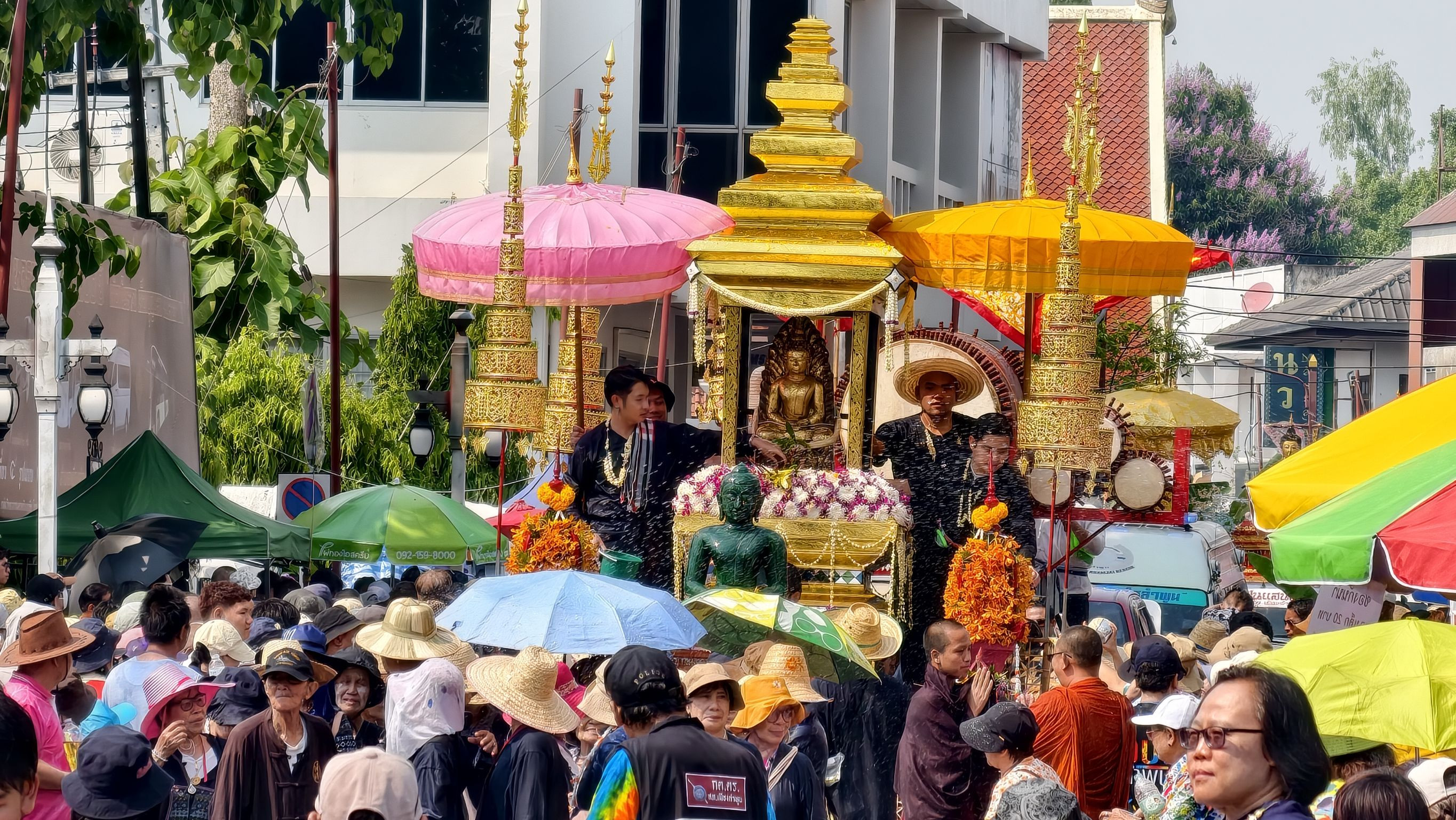 ประชาชนชาวจังหวัดลำพูนและนักท่องเที่ยว ร่วมชมขบวนแห่และสรงน้ำพระพุทธรูปที่สำคัญของวัดต...